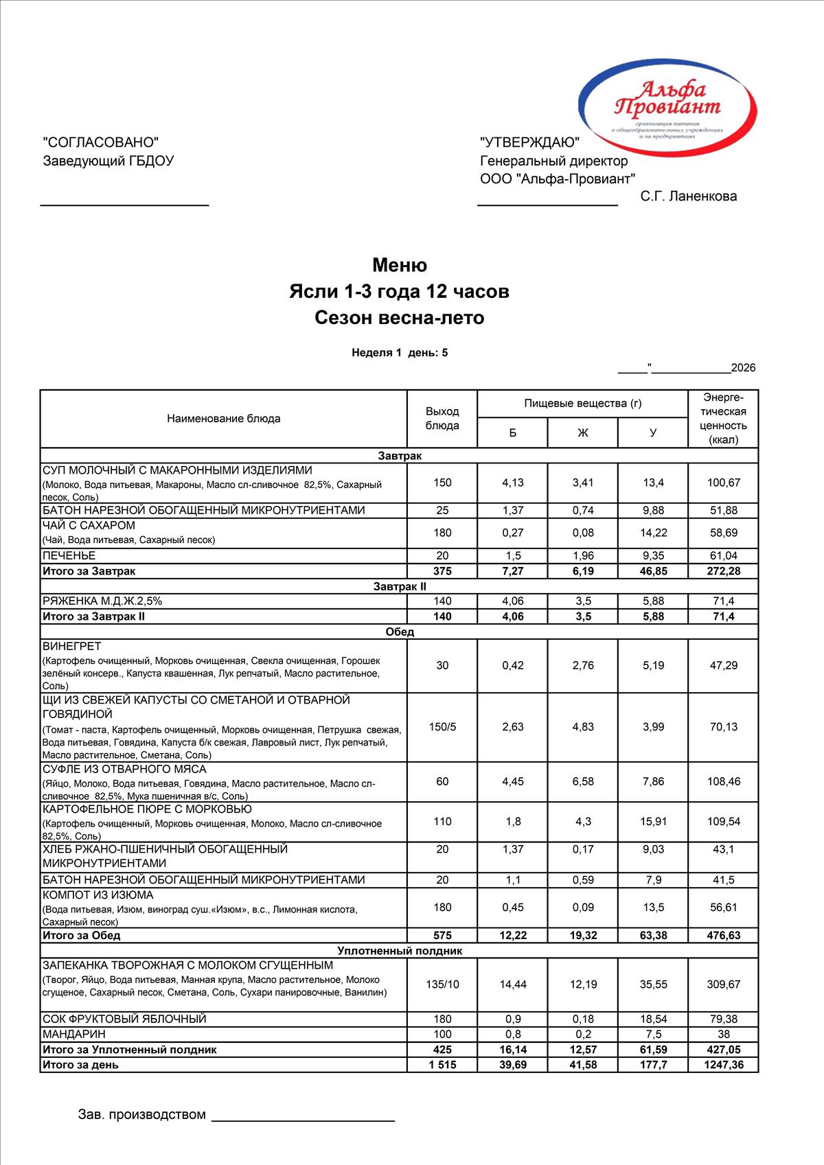 Цикличное двухнедельное (10 дней) сбалансированное меню рационов горячего питания для обеспечения льготным питанием детей дошкольных учреждений Калининского района Санкт-Петербурга. Приведенные меню различаются для групп детей ясельного и детсадовского возраста, а также зависят от времени работы дошкольного учреждения - 12 часов или круглосуточно.