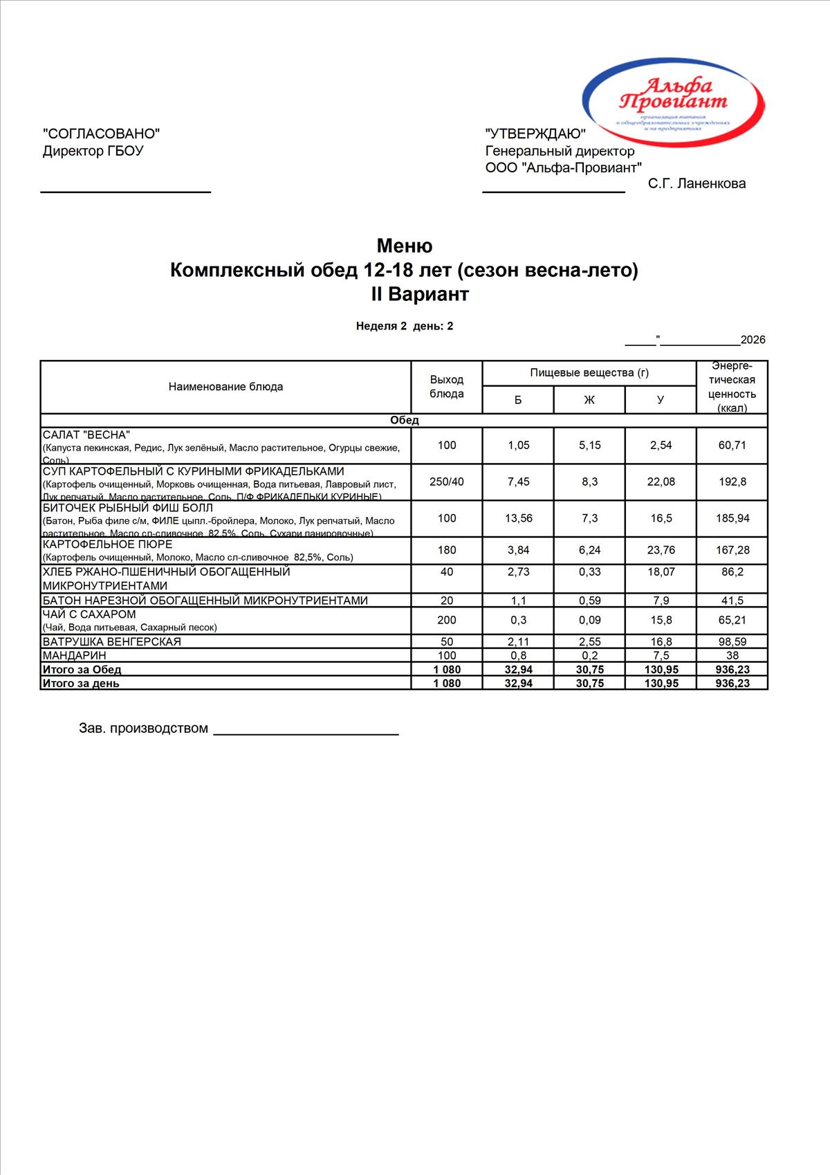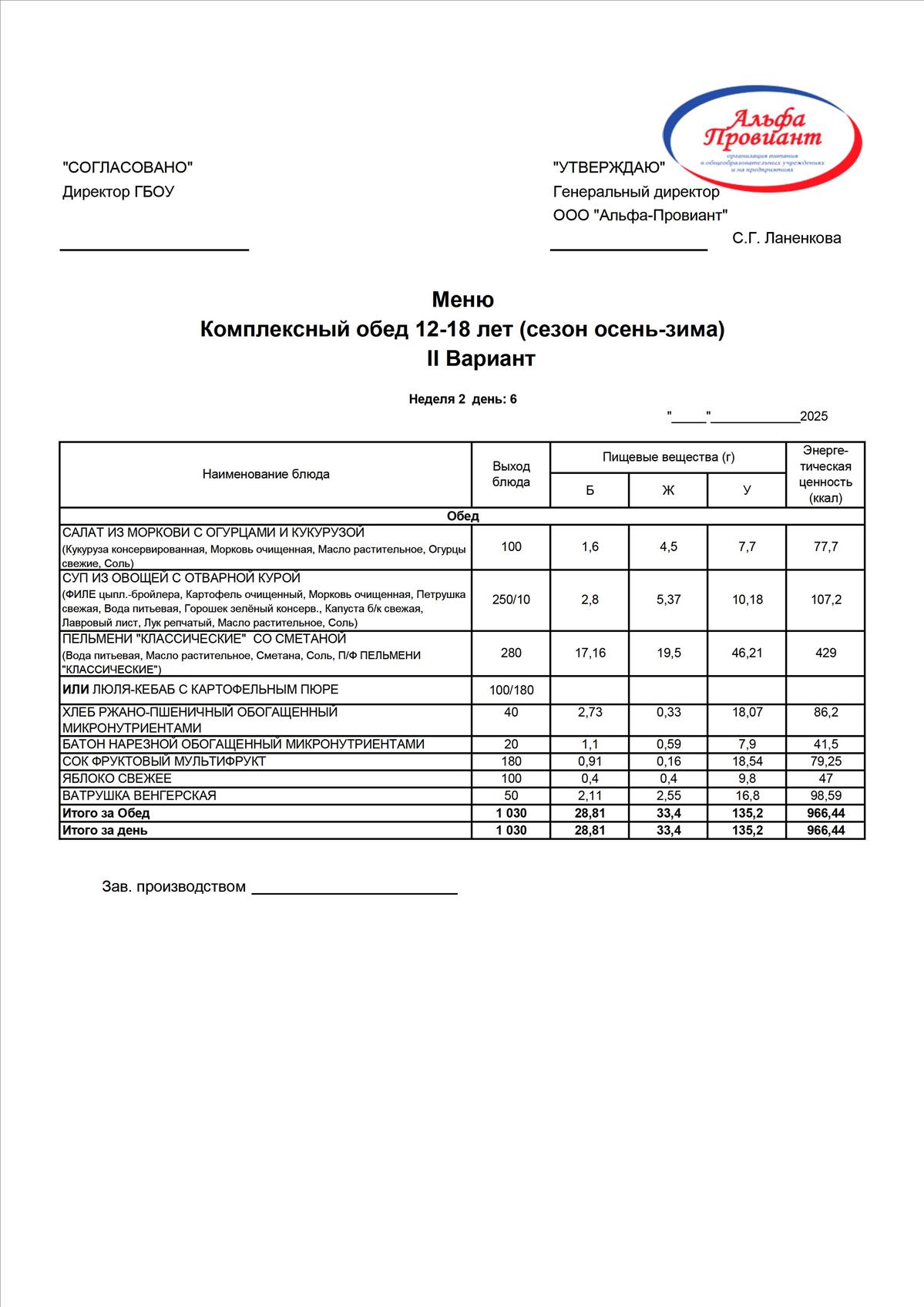 Комплексный обед для для школ Калининского района.Вариант 2. - 12 стр.