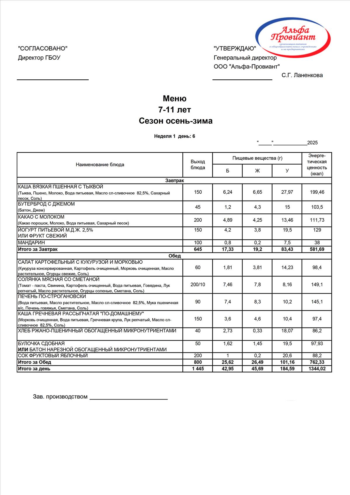 Цикличное двухнедельное (12 дней) сбалансированное меню рационов горячего питания для обеспечения льготным питанием детей в школах Калининского района Санкт-Петербурга. Приведенные меню различаются для детей начальных и средних-старших классов.
