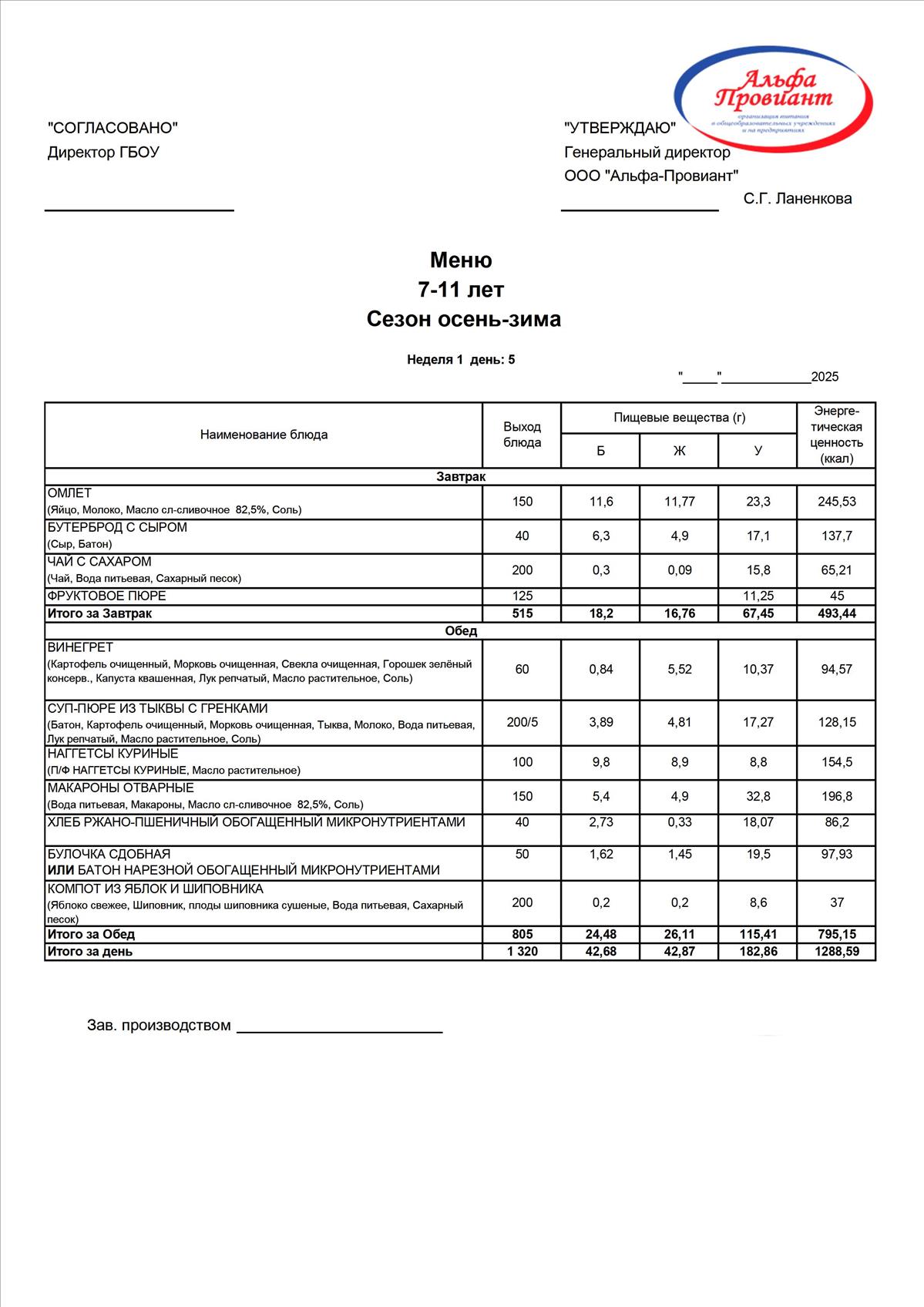Цикличное двухнедельное (12 дней) сбалансированное меню рационов горячего питания для обеспечения льготным питанием детей в школах Калининского района Санкт-Петербурга. Приведенные меню различаются для детей начальных и средних-старших классов.