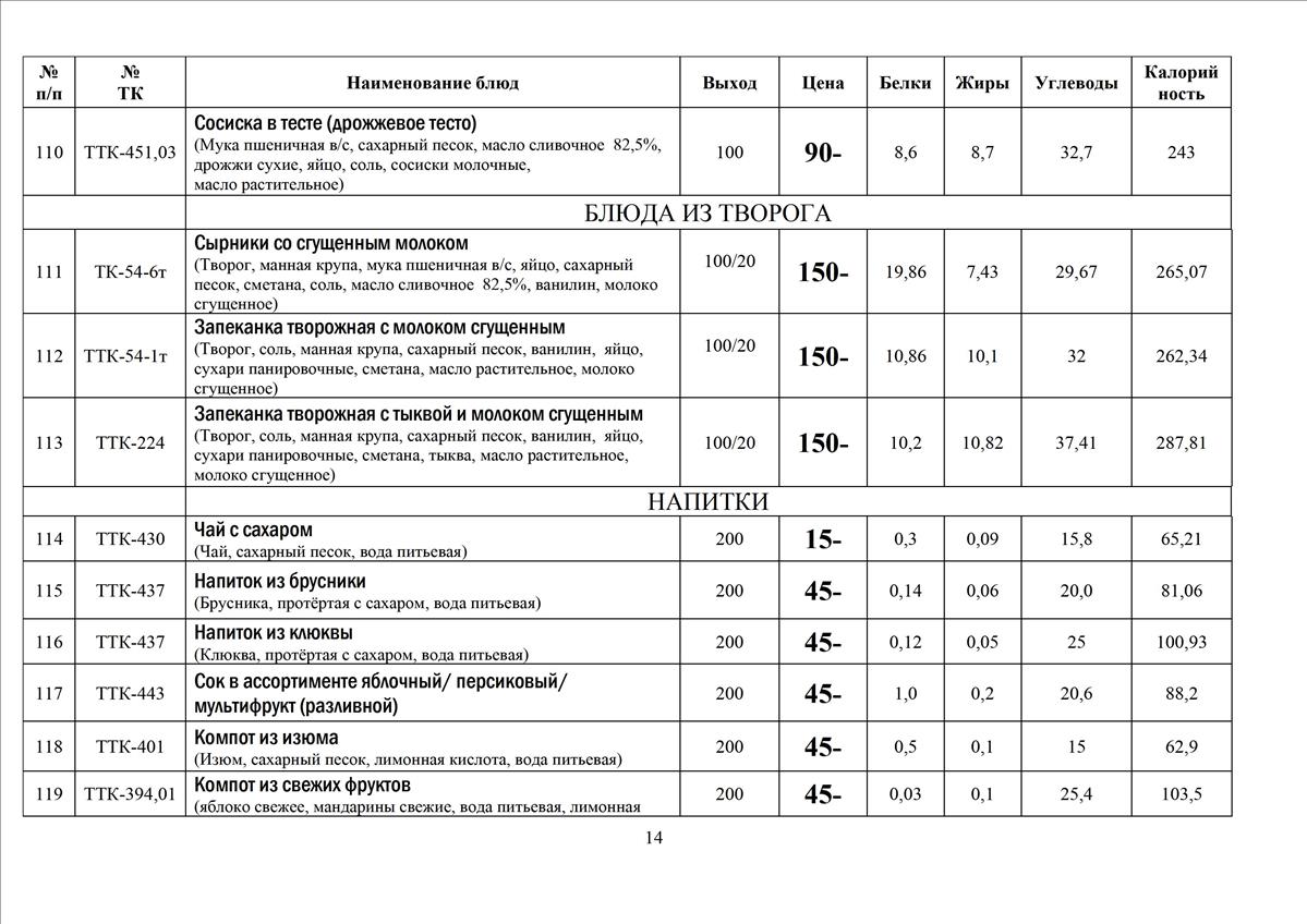 Ассортимент блюд меню свободного выбора в столовых школ Калининского района - 16 стр.